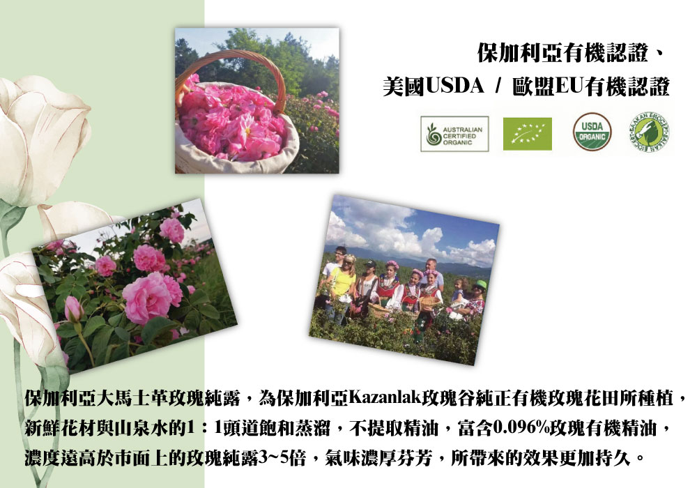 保加利亞有機大馬士革玫瑰純露4入組 /